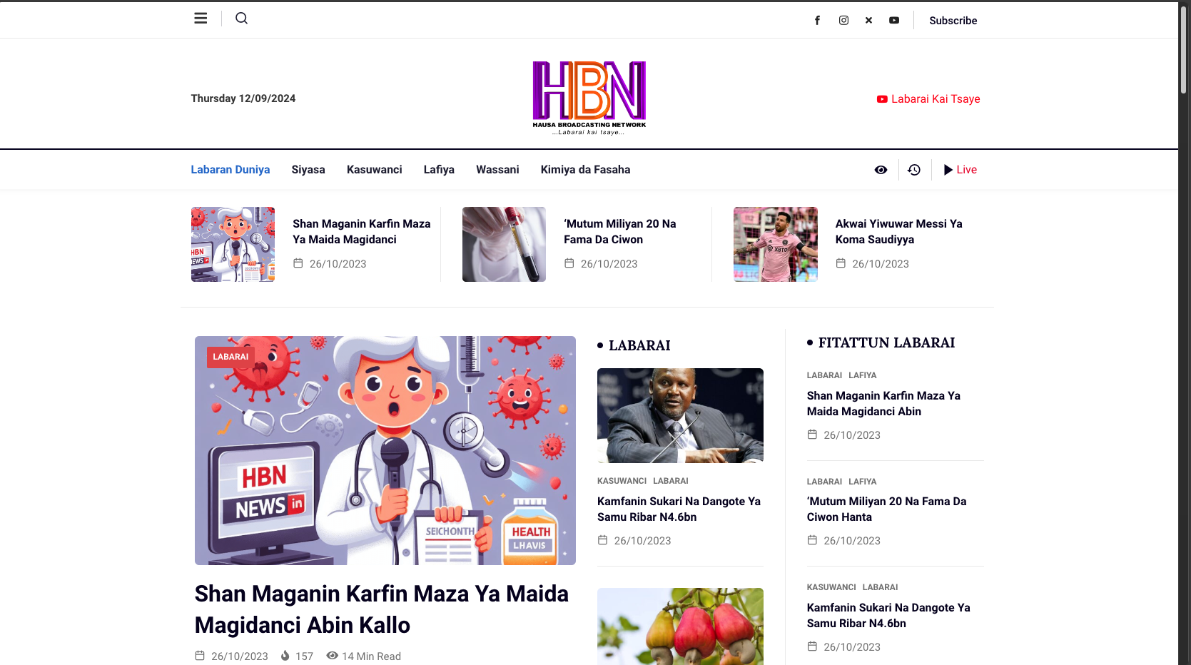 The Hausa Broadcast Network (HBN) website is a dynamic online platform designed to deliver high-quality Hausa content to a global audience. As a broadcast hub, HBN focuses on producing and sharing multimedia content, including live radio, video programs, podcasts, and news, all aimed at Hausa-speaking communities.